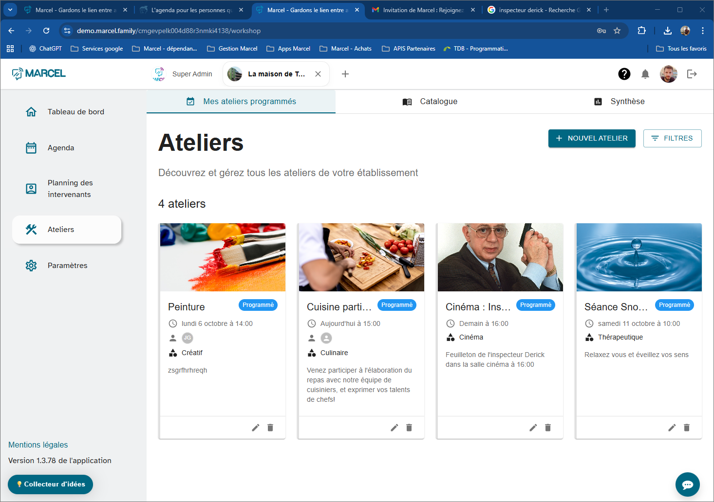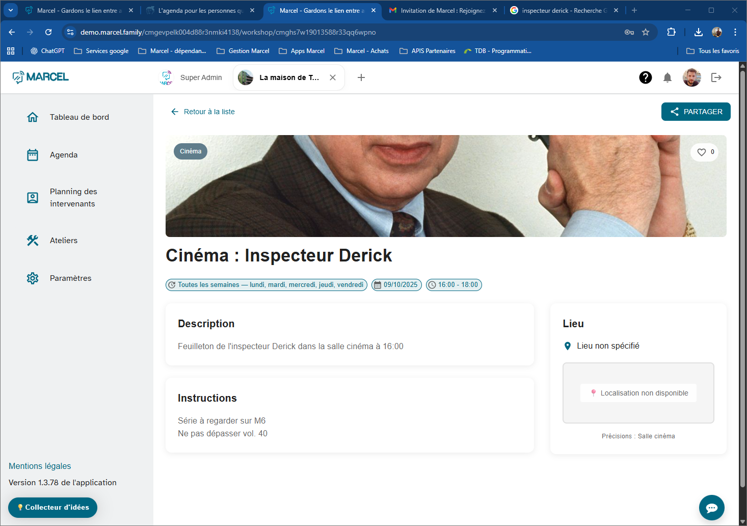 - Marcel TV et Marcel Tab affichent les animations du jour