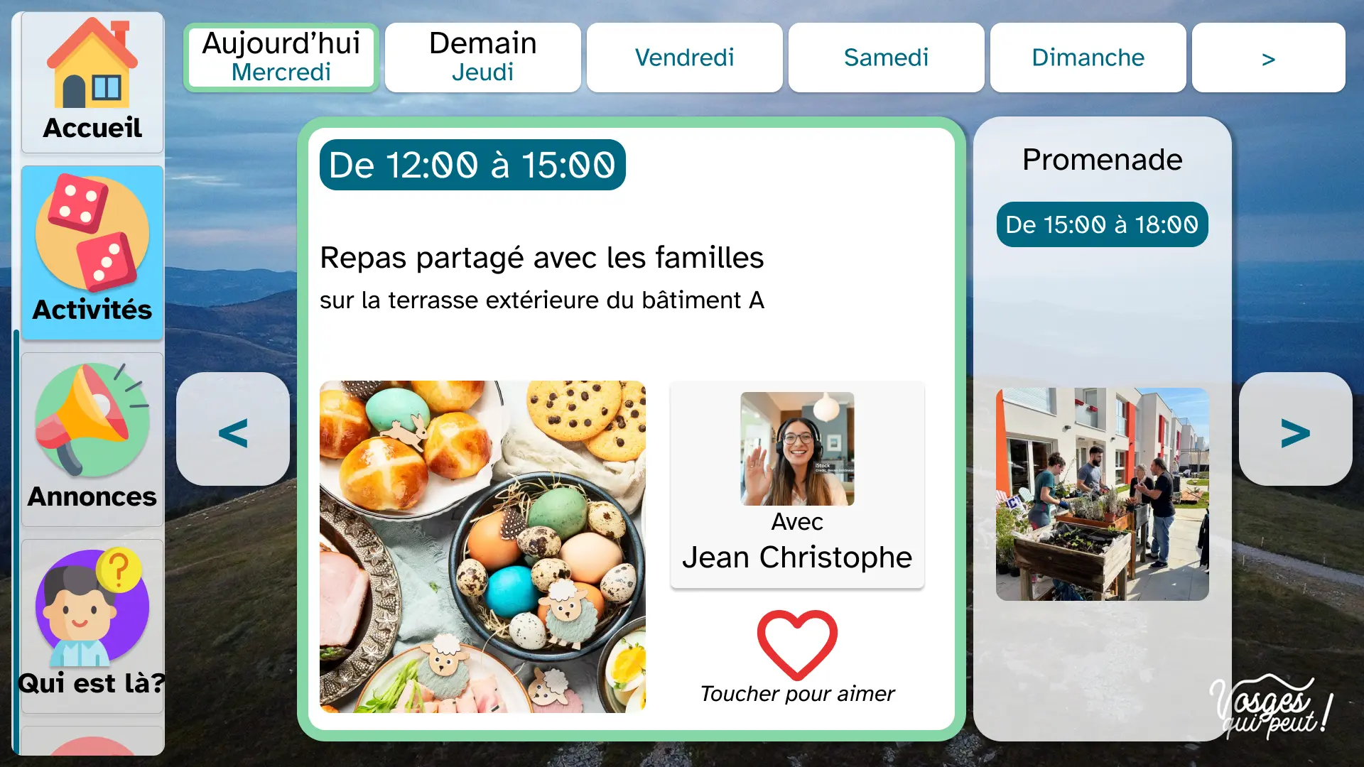 ✅Le bénéficiaire sait quelles sont les activités prévues aujourd'hui, à quelle heure, grâce à une interface simple à comprendre malgré les troubles cognitifs