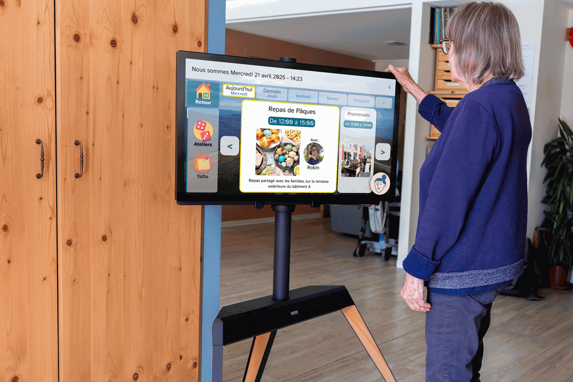 - Une application qui affiche des informations diversifiées, même si le bénéficiaire ne sait pas utiliser le tactile
